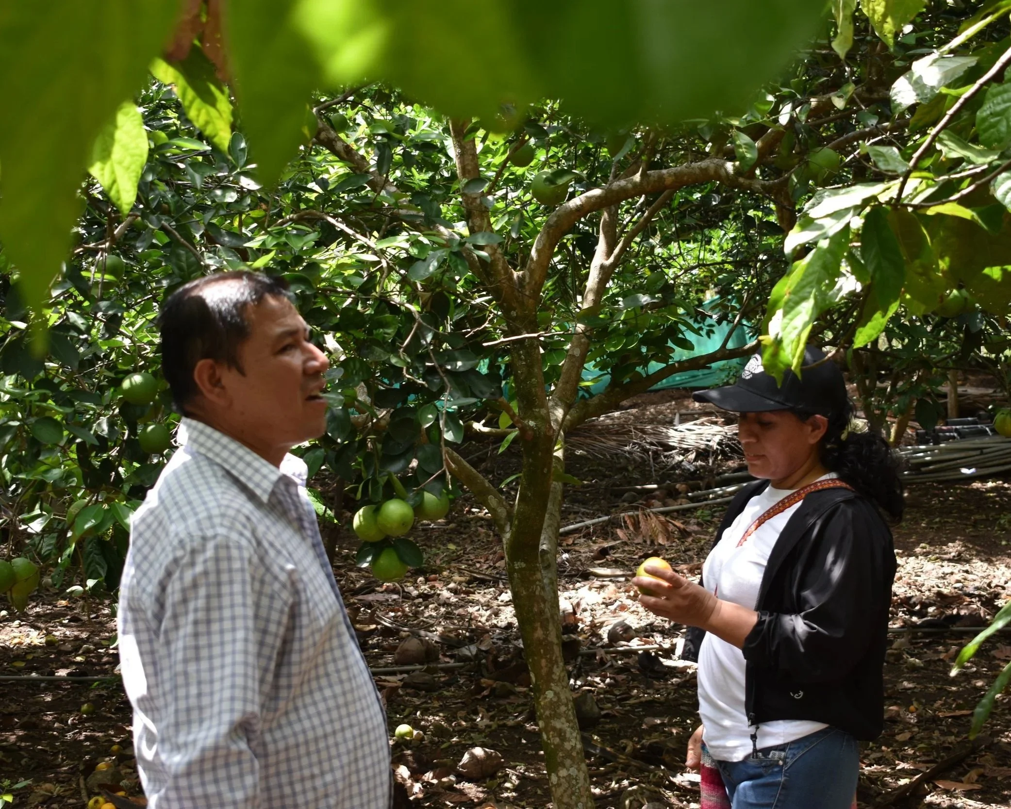 Visiting our new partners (since 2024) Finca Churupampa and the producer group of La Coipa village in Peru. On the left Lenin Tocto (from Finca Churupampa) and on the right Dona Flor, La Coipa women comittee’s representative.