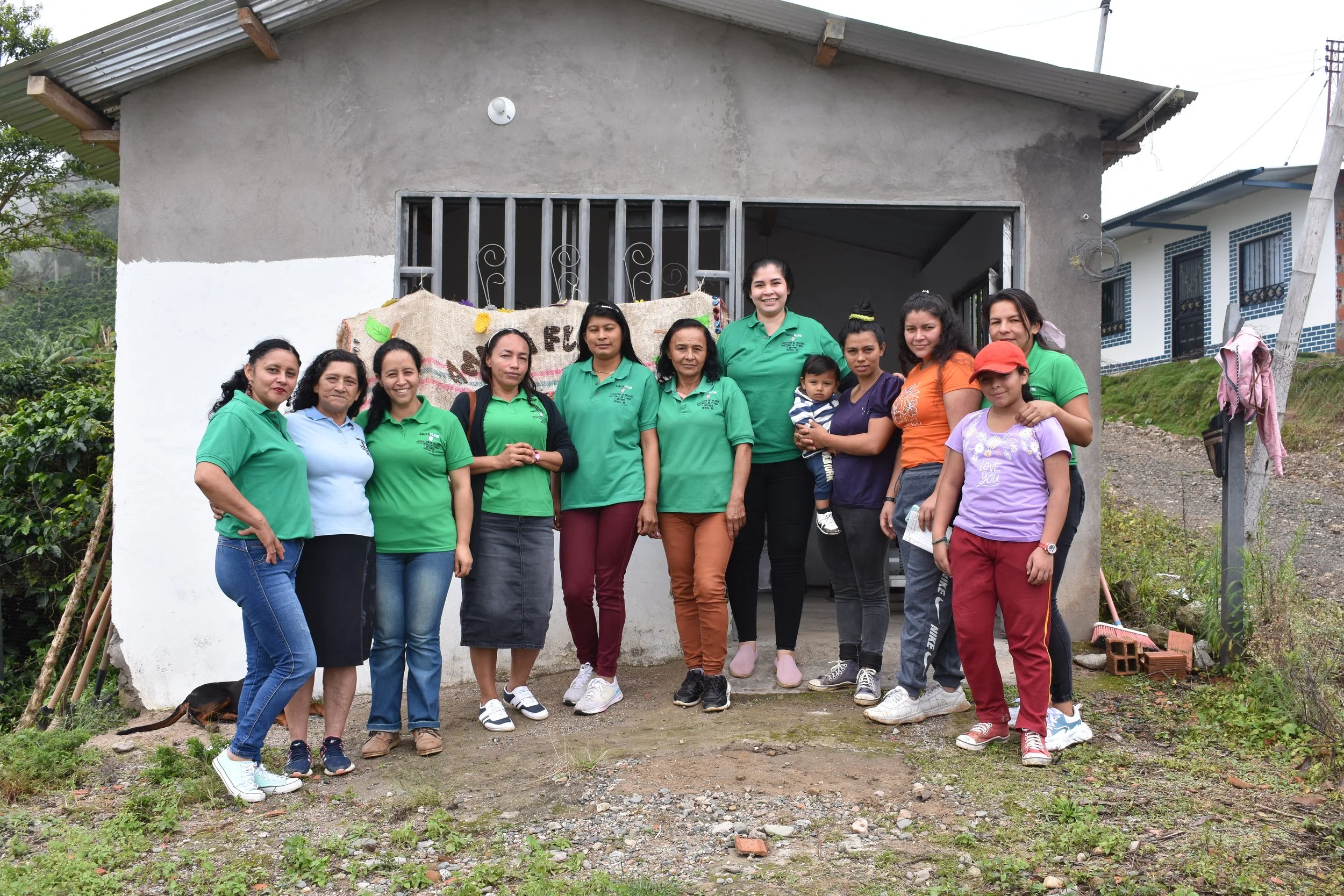 Producer members of AMUCAFLOME in front of their new headquarters during our visit in 2024